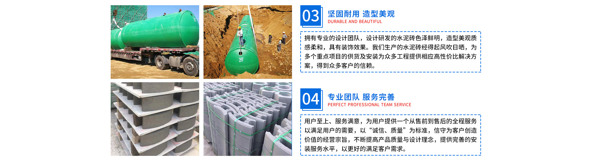 安徽萬(wàn)渠建筑科技有限公司是集研發(fā),生產(chǎn)制造,市場(chǎng)推廣為一體的綜合性企業(yè)。公司主要經(jīng)營(yíng)環(huán)保型預(yù)制鋼筋混凝土裝配式組合型檢查井和蓄水裝置等城建配套產(chǎn)品。產(chǎn)品生產(chǎn)過(guò)程采用獨(dú)特的生產(chǎn)工藝,機(jī)械化流水作業(yè)。產(chǎn)品大規(guī)模生產(chǎn),生產(chǎn)效率高,耗能少,成本低,產(chǎn)品使用壽命長(zhǎng)、免維護(hù)、無(wú)滲漏、無(wú)污染,符合“綠色環(huán)保,低碳節(jié)能”的發(fā)展要求,是傳統(tǒng)磚砌井池的理想替代產(chǎn)品。